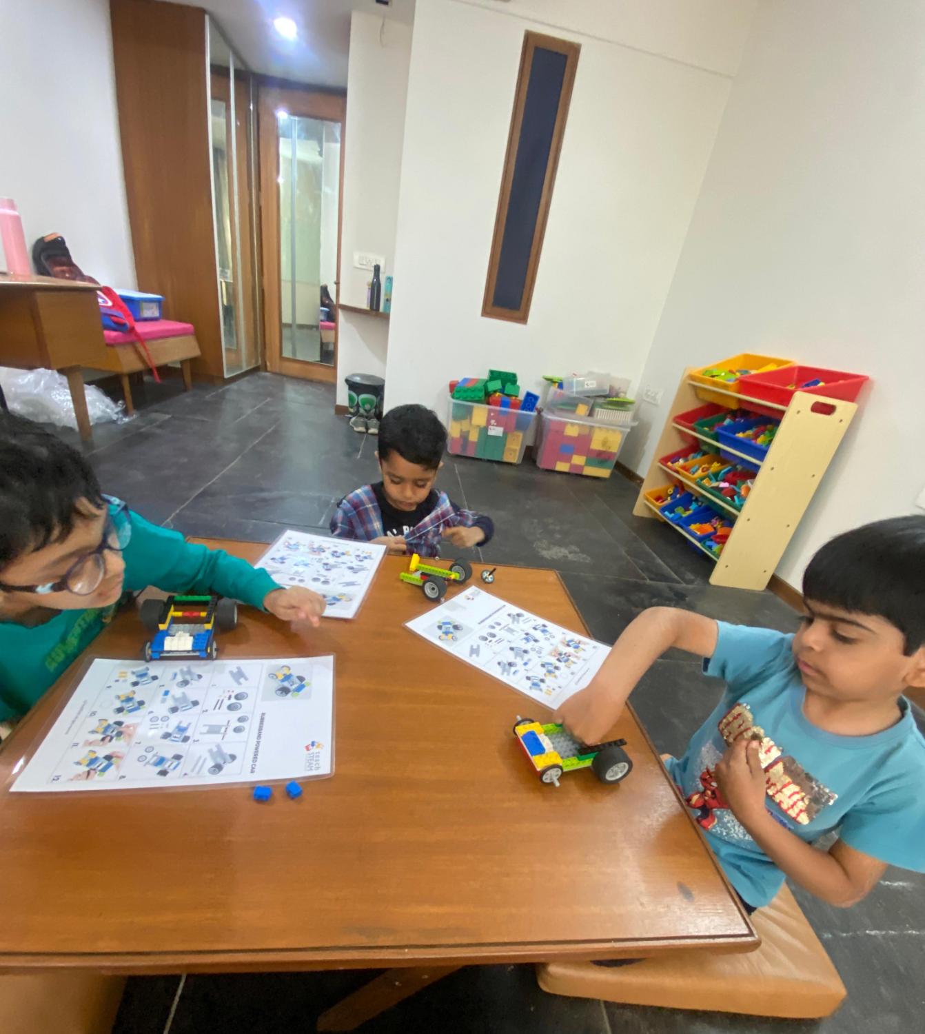 The LEGO Build, Spin, Move workshop is a certified program designed to introduce children to early science and engineering concepts in a fun and playful way. Through a series of 4 to 12 engaging sessions, kids explore the concept of force and motion by understanding how things move in the real world using LEGO gears, wheels, axles, pulley and more. They build exciting models that spin, roll, and move—learning through hands-on activities that encourage curiosity and discovery. This workshop has been conducted at locations across Rajkot and Ahmedabad.